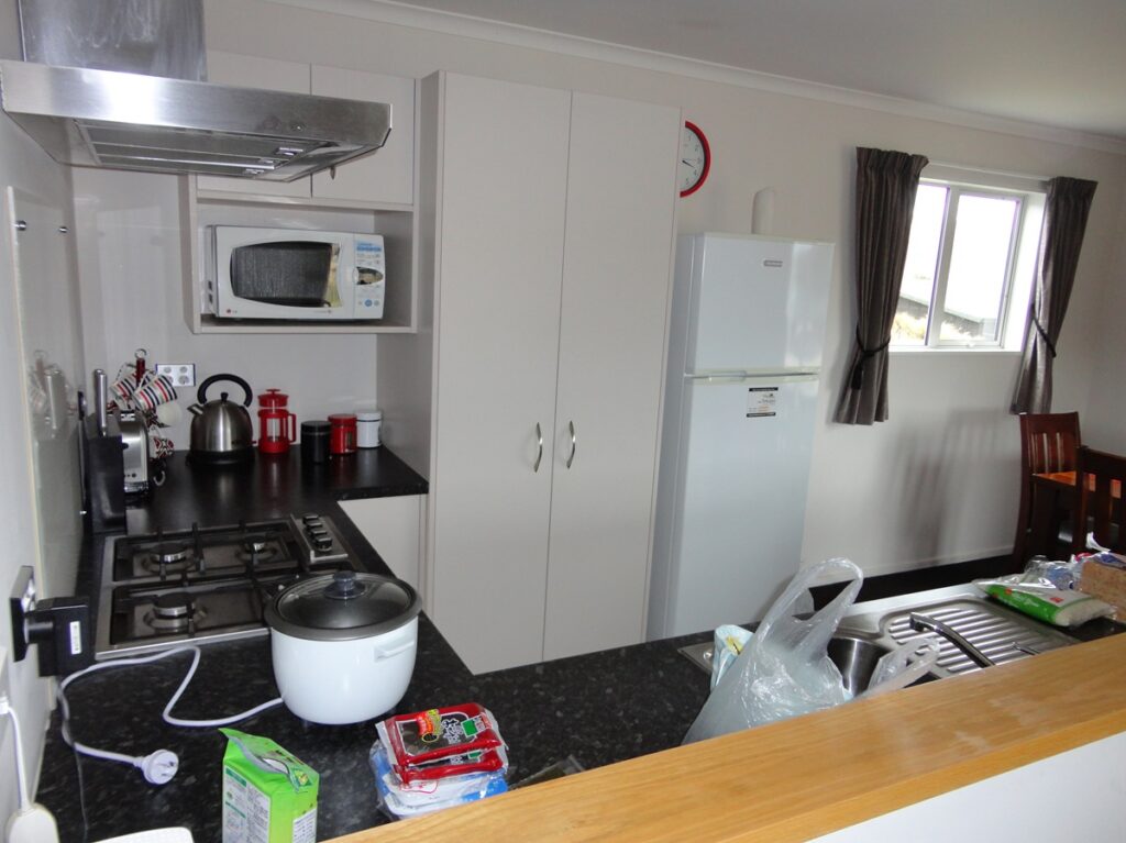 キッチンです。明日はマウントクックへハイキングに行くので、おむすび弁当を作る予定です。キッチン付きは助かりますね~
